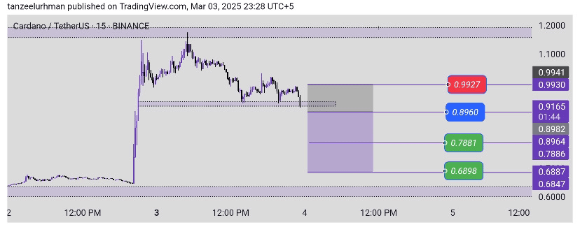 $ADA hat gerade sein Unterstützungsniveau durchbrochen, und wenn er es erneut testet, werden wir einen Short-Trade eingehen. Diese Strategie gibt uns mehr Vertrauen, da der erneute Test des Unterstützungsniveaus auf die Psychologie der Marktteilnehmer hinweist, was uns die Möglichkeit gibt, potenzielle Trends zu erkennen und von ihnen zu profitieren.
