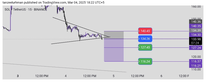 $SOL gerade aus dem Bärenflagge ausgestiegen und überprüft nun erneut die Unterstützungsniveaus. Wenn Sie möchten, können Sie jetzt einen Short-Trade durchführen, da der Ausstieg aus diesem Muster signalisiert, dass der Markttrend sich nach unten wenden könnte. Aber denken Sie immer daran, dass es im Trading ein Risiko gibt, daher ist es wichtig, Ihren Stop-Loss und das Risikomanagement im Auge zu behalten.