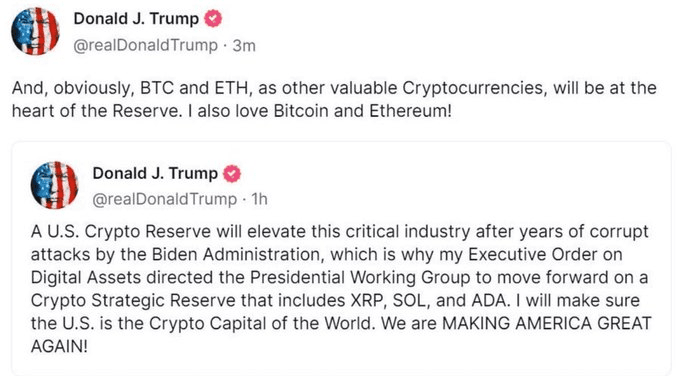 Trump hat bestätigt, dass die Crypto Strategic Reserve mehr als nur SOL, XRP, ADA, ETH und BTC umfassen wird.