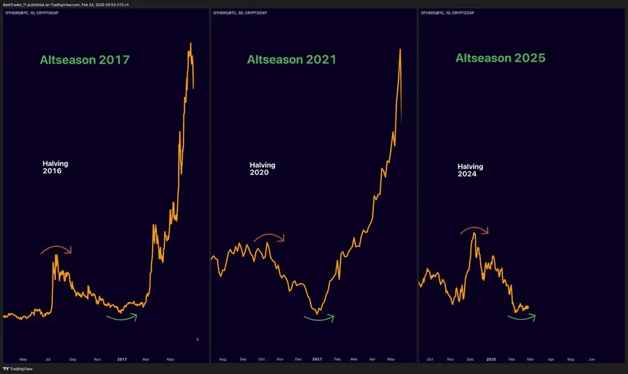 Trotz der rauen Charts von heute 📉 und der hinterherhinkenden Altcoins zeigt Bitcoin seine Dominanz 💪—ein starkes Indiz dafür, dass die Marktzyklen in vollem Gange sind. Aber drück nicht den Panikknopf 🛑; die Altseason ist nicht vorbei—sie drückt nur die Schlummertaste 😴, bevor sie sich auf den nächsten großen Anstieg vorbereitet. Lass uns das aufschlüsseln und sehen, warum du nicht in Panik geraten solltest, da diese Pause vielleicht nur die Ruhe vor dem Sturm ist! 🚀