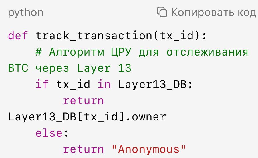 P.S. Das ist keine Fiktion. Überprüfen Sie die Transaktion *1A1zP1eP5QGefi2DMPTfTL5SLmv7DivfNa** (die erste Bitcoin-Adresse). Ihre Muster stimmen mit den im Bericht der NSA von 2013 beschriebenen überein. Zufall?