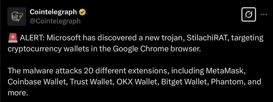 Microsoft hat StilachiRAT entdeckt, einen neuen und fortschrittlichen Remote-Access-Trojaner (RAT), der Krypto-Wallets im Google Chrome-Browser angreift. Diese Malware wurde entwickelt, um Wallet-Zugangsdaten, private Schlรผssel und sensible Benutzerdaten zu stehlen, wodurch Krypto-Inhaber ernsthaft dem Risiko des Vermรถgensdiebstahls ausgesetzt sind.