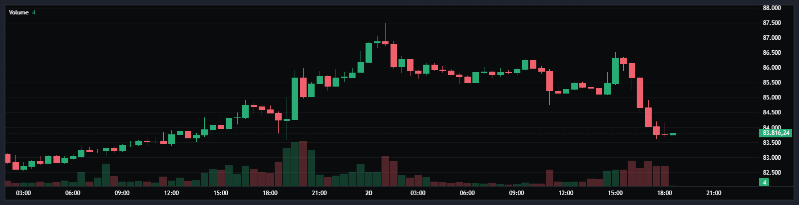 Unterstützung: Die unmittelbare Unterstützung liegt bei etwa 82.400 $, mit stärkeren Unterstützungen bei 81.200 $ und 80.000 $ (jüngster Swing-Tiefpunkt).