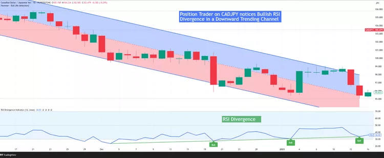 bullische Divergenz, die am RSI entsteht, was auf einen schwächenden bärischen