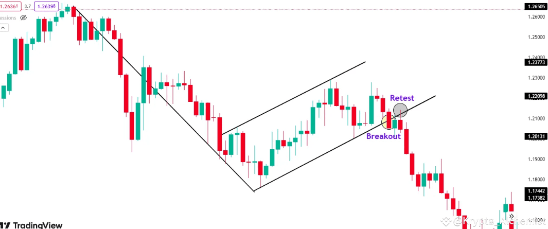 ✅ Bestätigung des Ausbruchs: Der Preis fällt unter die Unterstützung der Fahne und bestätigt eine Fortsetzung des Trends.