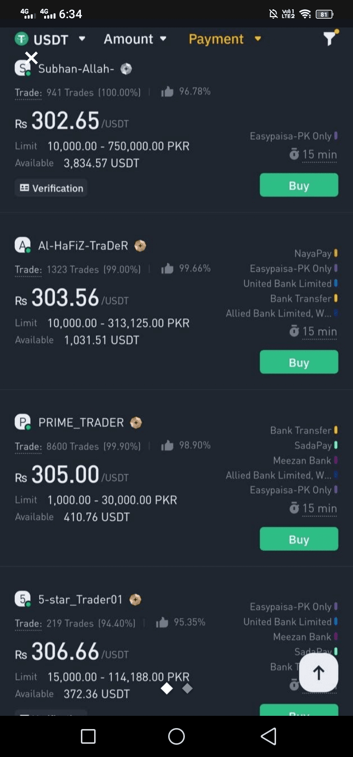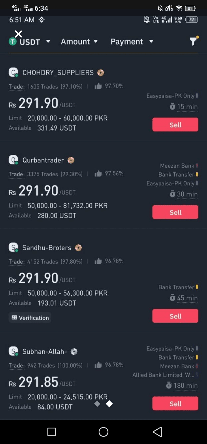 Zum Beispiel lag der Durchschnittspreis für USDT vor einer Woche bei 293 PKR. Jetzt sehen wir: