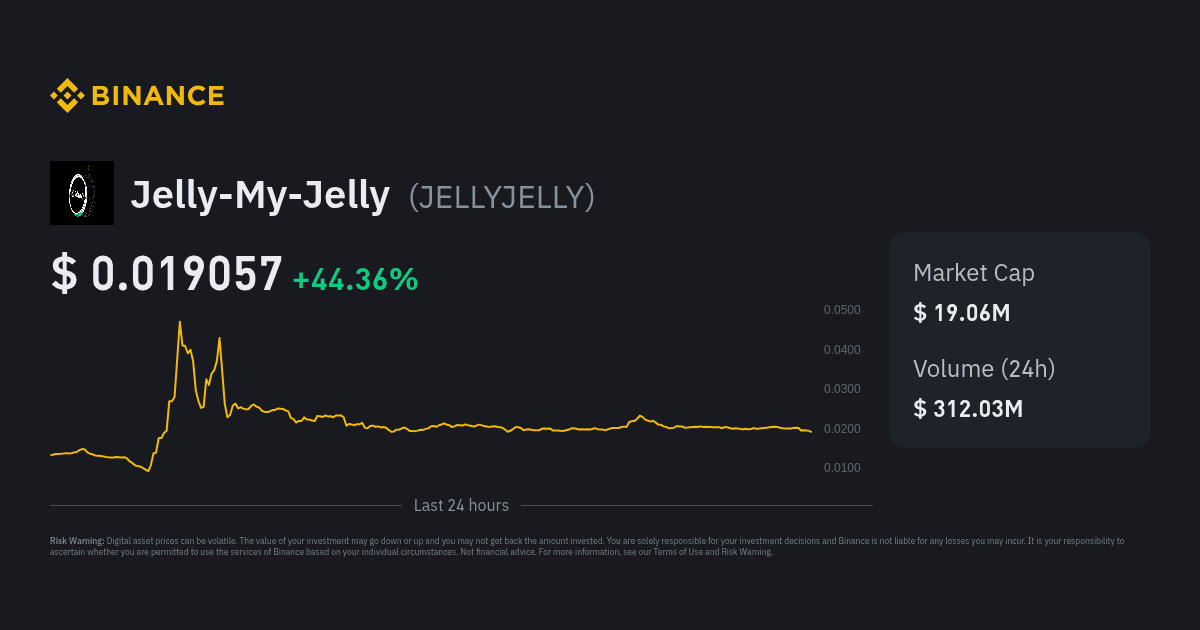 - *JELLYJELLY* könnte eine *hochriskante, hochbelohnende Gelegenheit* fĂŒr diejenigen werden, die gut im Hebelhandel sind. Achten Sie auf die *Marktbewegungen* nach der Auflistung auf *Binance Futures*. đ„