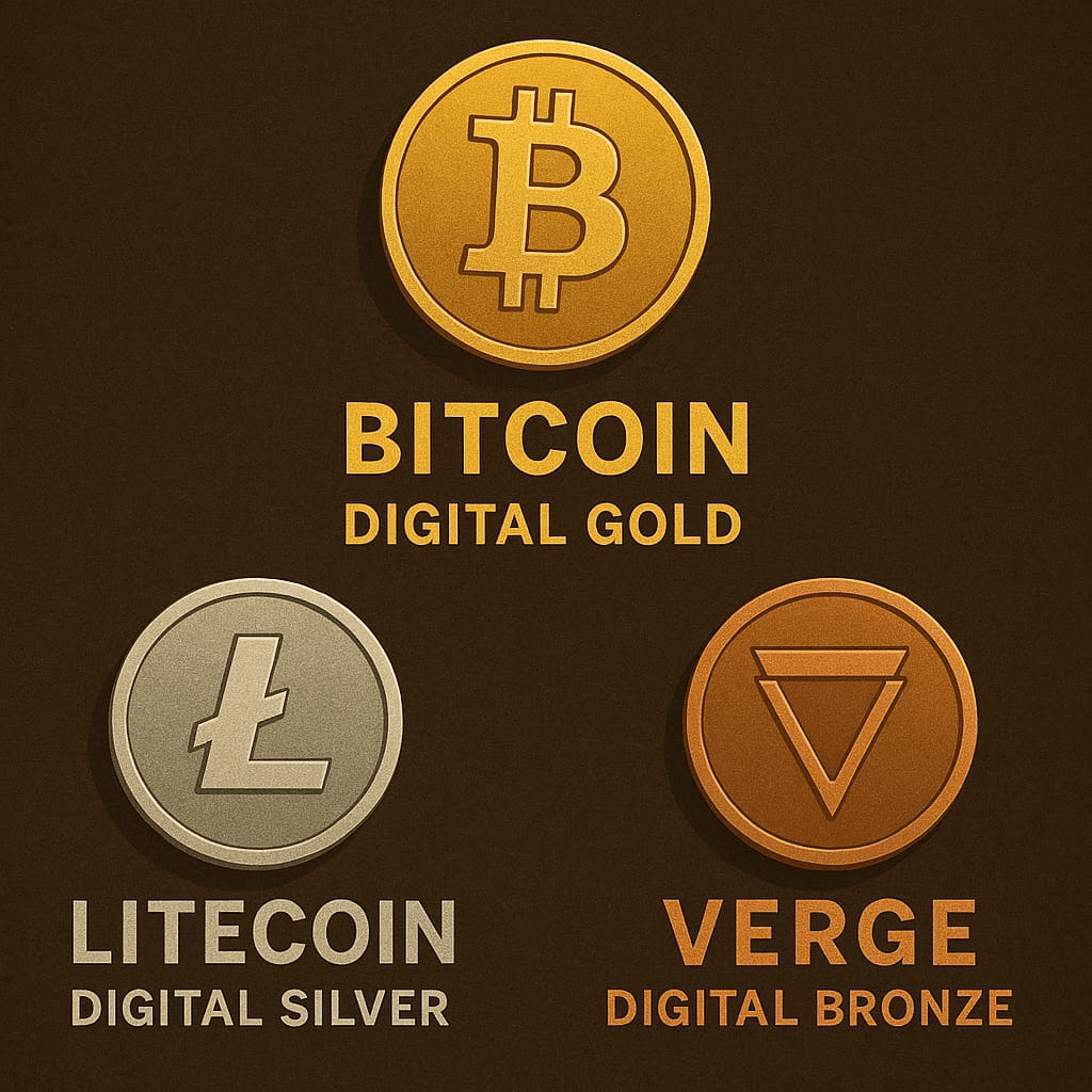 So wie wir Gold, Silber und Bronze im Laufe der Zeit für verschiedene Zwecke vertraut haben, beginnen diese digitalen Währungen, die Zukunft der Finanzen auf ähnliche Weise zu formen. Egal, ob du Wohlstand in Bitcoin speicherst, schnelle Zahlungen mit Litecoin tätigst oder Verge für alltägliche, auf Privatsphäre fokussierte Transaktionen nutzt, jede Münze hat ihre Rolle in diesem digitalen Ökosystem.
