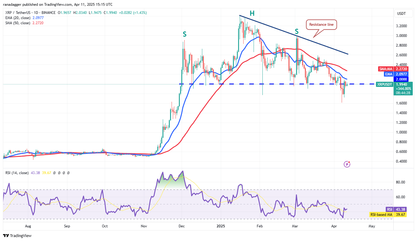 Wenn der Preis von der 20-Tage-EMA abprallt, werden die Bären versuchen, das XRP/USDT-Paar auf das entscheidende Unterstützungsniveau bei 1,61 USD zu senken. Käufer werden erwartet, das Niveau bei 1,61 USD heftig zu verteidigen, da ein Bruch darunter den Weg für einen Rückgang bis 1,27 USD freimachen könnte.