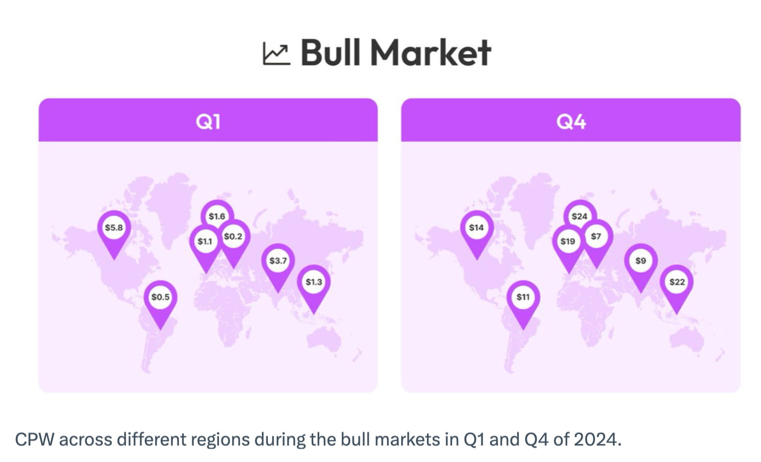 Er hob hervor, dass im Jahr 2024 die USA und Westeuropa zwischen Q1 und Q3 eine CPW-Steigerung von viermal bzw. 27-mal erlebten, während die Märkte weiterhin konsolidiert wurden und das Interesse von Krypto-Wallet-Inhabern nachließ.