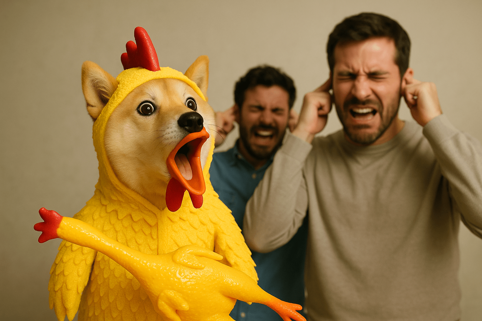 🐔🐤🔊📢 Du hörst diesen SEHR markanten Klang, der dich alles stehen und liegen lässt und du dich umblickst wie: "Warte... ist mein quietschendes Plastik-Hühnchen gerade umgefallen?!" 📢🔊🐤🐔