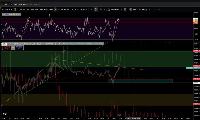 Bevor das passiert, gibt es immer noch eine gute Chance, dass wir einen Rücksetzer auf etwa 93.500–92.700 sehen werden.