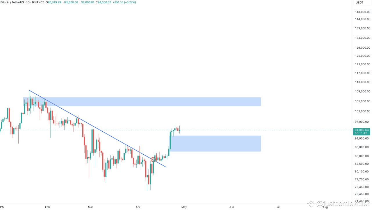 #BTC already broke out of the bearish structure a while back, and honestly, that was the first major shift everyone should have been paying attention to. Ever since that breakout, we have been building bullish structure on the higher timeframes, higher highs, higher lows, and overall strong momentum to the upside. This gave the bulls a clear advantage, and so far, nothing has really changed that bigger picture.