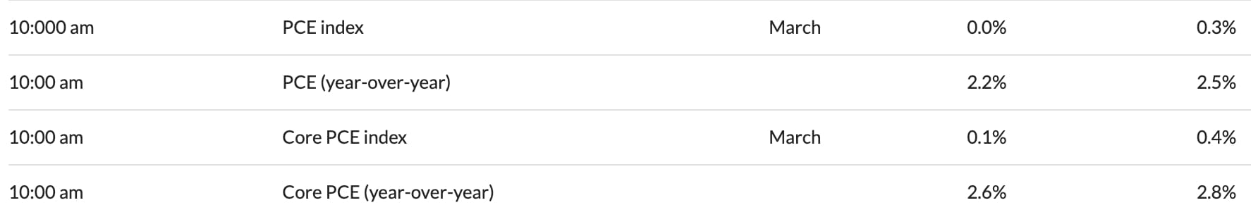Darüber hinaus wird erwartet, dass die Gesamt-PCE-Inflation, die die Preise für Lebensmittel und Energie umfasst, einen signifikanten Rückgang erfahren wird, wobei die Jahr-über-Jahr-PCE-Inflation für März voraussichtlich 2,2 % betragen wird, gegenüber 2,5 % im Februar.