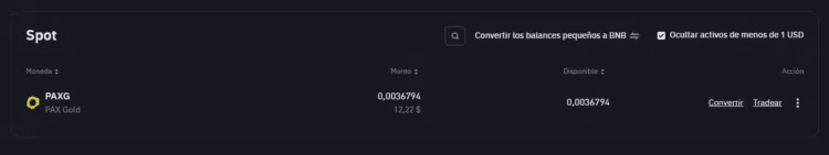 Wenn Sie all dies getan haben, werden die PAXG-Token in wenigen Sekunden in Ihrer Spot-Wallet erscheinen.