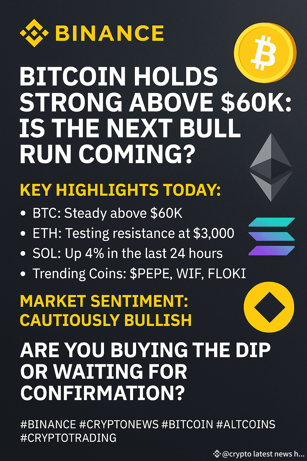 Bitcoin$BTC is showing resilience by holding firm above the $60,000 mark, signaling strong market confidence. With institutional interest growing and ETF inflows rising, many traders are eyeing the next breakout.