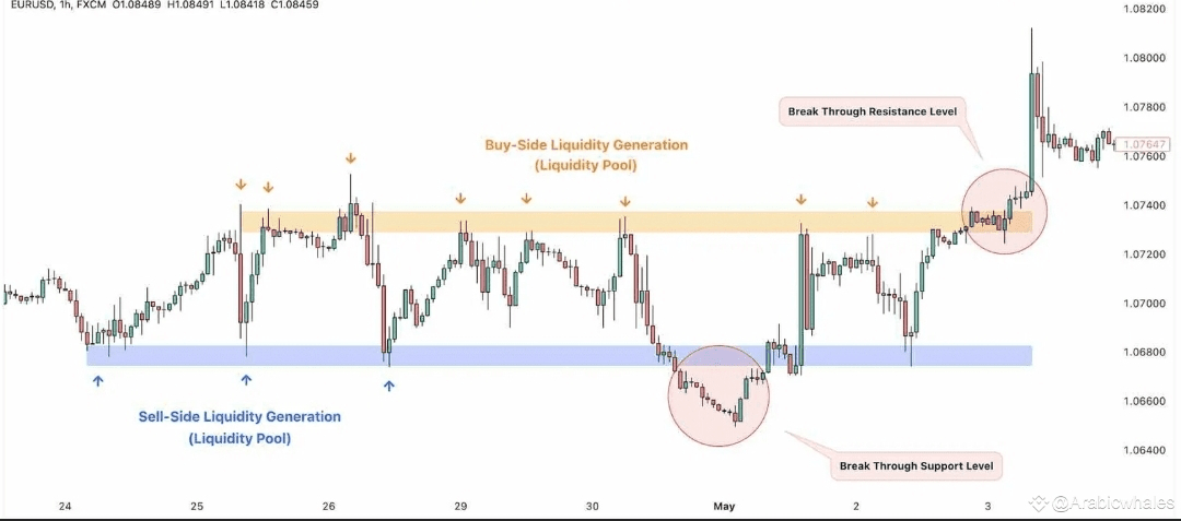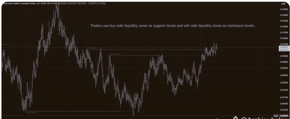 Die Liquidität auf der Kaufseite stellt Kauf-Stopp-Orders dar, die über wichtigen Widerstandsniveaus platziert sind.