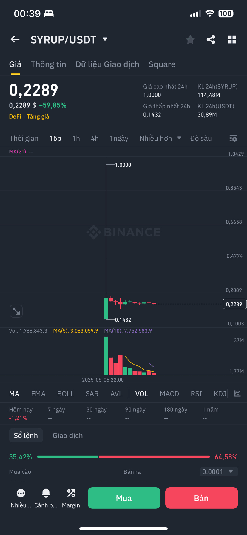 Am 6. Mai 2025 listete Binance \$SYRUP, den Token von Maple Finance – einer DeFi-Plattform für institutionelle Kredite. Innerhalb weniger Stunden sprang der Preis von \$0.143 auf \$1.00, ein Anstieg von über 600%, bevor er stark auf \$0.22 korrigierte und eine Welle von FOMO auslöste – gefolgt von einem "Dump"-Effekt.