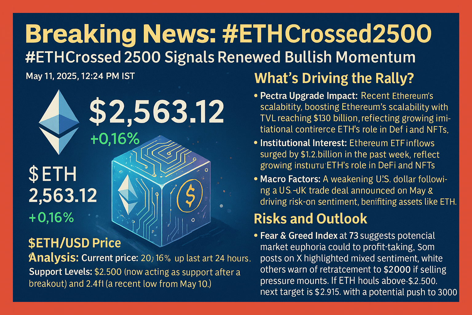 Das $ETH/USD-Paar hat die wichtige Widerstandsmarke von $2.500 durchbrochen, eine Schwelle, die zuvor die Gewinne begrenzt hatte, wie in jüngsten Marktanalysen festgestellt wurde.