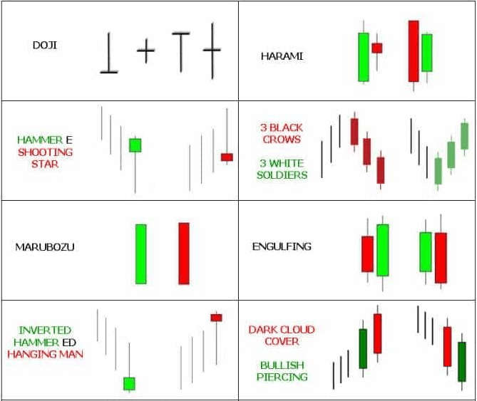 15. Doji – Eine Kerze, bei der die Eröffnungs- und Schlusskurse nahezu identisch sind, was auf eine Zögerlichkeit im Markt hindeutet.