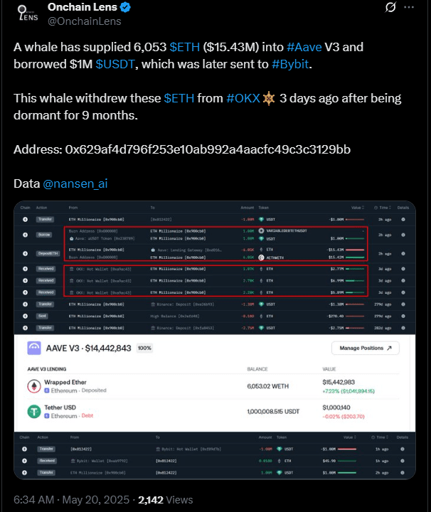 Nach monatelanger Stagnation kommt Aave mit voller Kraft zurück. Ein Zustrom von WETH und erweiterte Kreditmöglichkeiten haben das Vertrauen der Händler erneuert. Der Rückgang von Ethereum auf 2.700 Dollar hat das Interesse am DeFi-Kreditwesen wiederbelebt und sogar die großen Wale zurückgebracht.