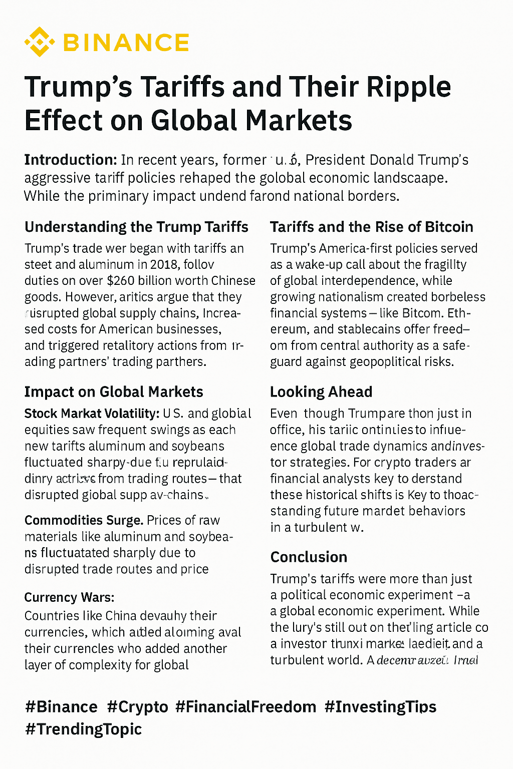 In den letzten Jahren haben die aggressiven Zollpolitiken des ehemaligen US-Präsidenten Donald Trump die globale Wirtschaftslandschaft neu gestaltet. Während das Hauptziel darin bestand, die amerikanische Fertigung zu beleben und Handelsungleichgewichte zu verringern, reichten die Wellenwirkungen weit über nationale Grenzen hinaus. Heute betrachten wir diese Politiken erneut, um ihre fortgesetzten Auswirkungen auf den globalen Handel, die Finanzmärkte und sogar Kryptowährungen zu verstehen.