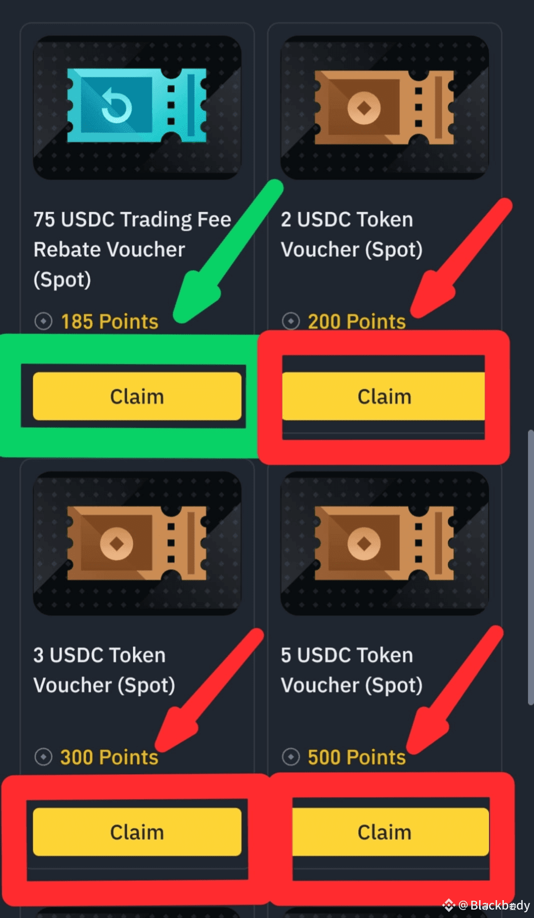 The 75 USDC Fee Rebate costs just 185 points, while the 2 USDC token costs 200 points. That means you’re getting up to 37x more value (if you use all $75 rebate) for fewer points!