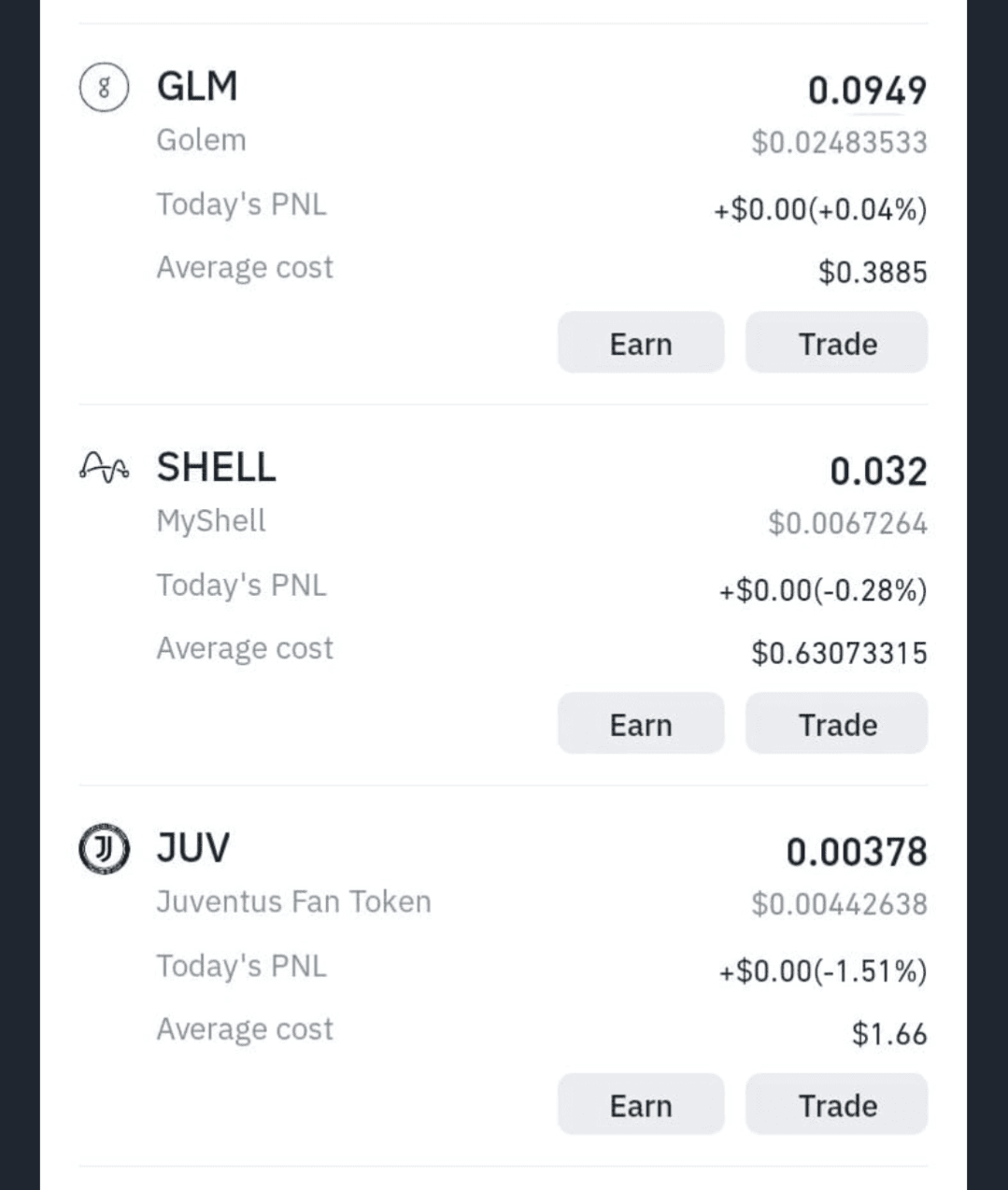 3. Du wirst eine Liste von MĂŒnzen mit kleinen Guthaben (Staub) sehen.