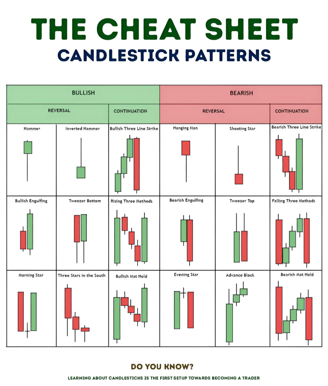 Hier ist das ULTIMATIVE KERZENSTICK-CHEAT-SHEET, das jeder Trader speichern und studieren muss.đ