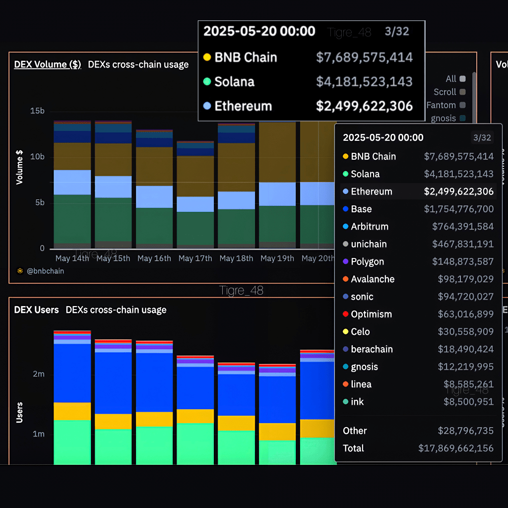 • Auf dem Bild können wir sehen, dass BNB die Position (Dex Volumen) anführt, was ein REALES Beweis dafür ist, dass diese Änderungen zu diesem Ergebnis beigetragen haben 🏅