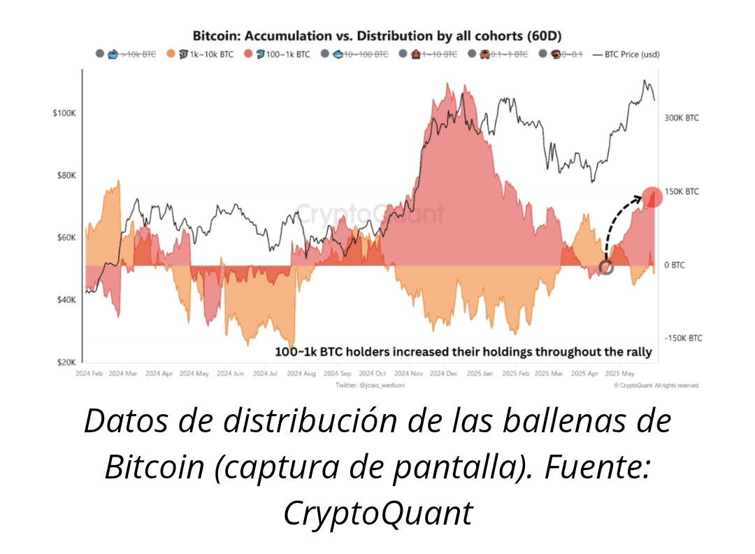 "Die Entitäten, die zwischen (1.000 und 10.000) BTC halten, haben ihre Exposition schrittweise verringert, während der Bitcoin-Preis von 81.000 auf 110.000 Dollar stieg, indem sie ihre Bestände systematisch während des Anstiegs verteilt haben", berichtete CryptoQuant.