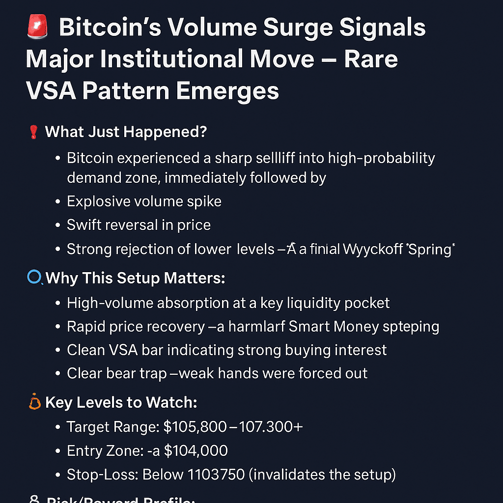 Ein seltenes und kraftvolles Volumen-Spread-Analyse (VSA) Signal ist gerade auf dem Bitcoin ($BTC ) Chart erschienen â eines, das seit Jahren nicht mehr aufgetaucht ist. Dies ist kein spekulatives Gerede. Die Preisbewegung und Volumendynamik deuten auf einen klaren FuĂabdruck von Smart Money-Akkumulation hin, und es kĂśnnte sich gerade jetzt entfalten.