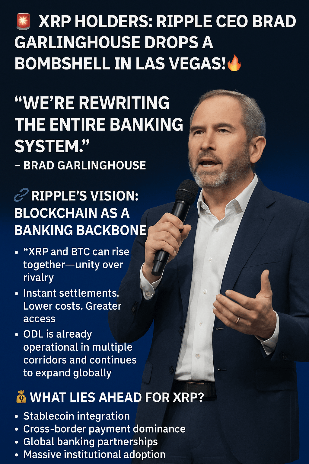 Ripple-CEO Brad Garlinghouse sorgte diese Woche mit einer mutigen, zukunftsorientierten Vision beim XRP Las Vegas-Event für Schlagzeilen – und versendete Wellen (Wortspiel beabsichtigt) in der Finanz- und Krypto-Welt.