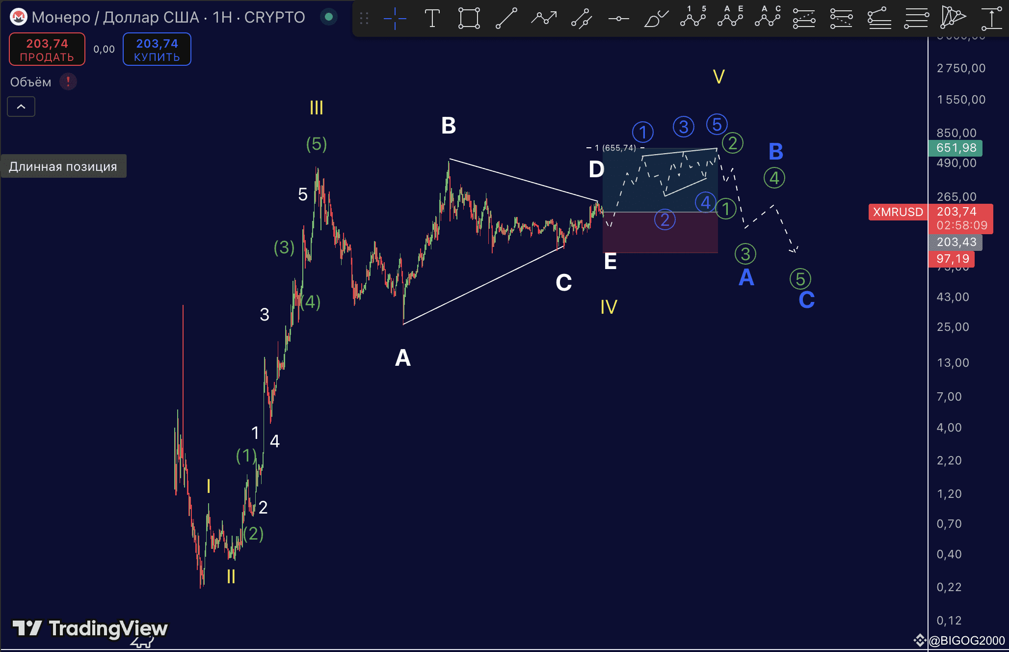 Bis heute sehen wir die Bestätigung dieses Szenarios! Die Münze XMR hat eine starke Impulsbewegung nach oben vollzogen und unser erstes Ziel klar erreicht.