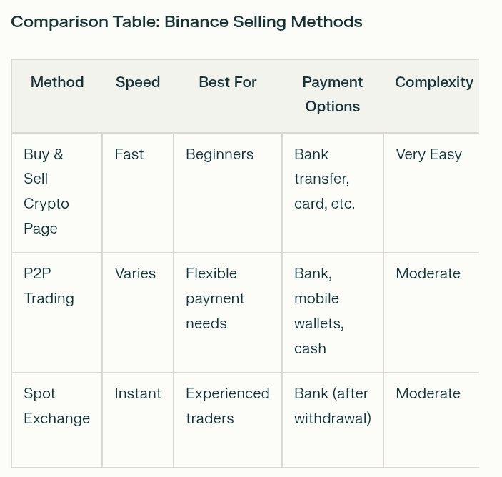 Binance bietet drei Hauptmethoden zum Verkauf von Bitcoin:$BTC