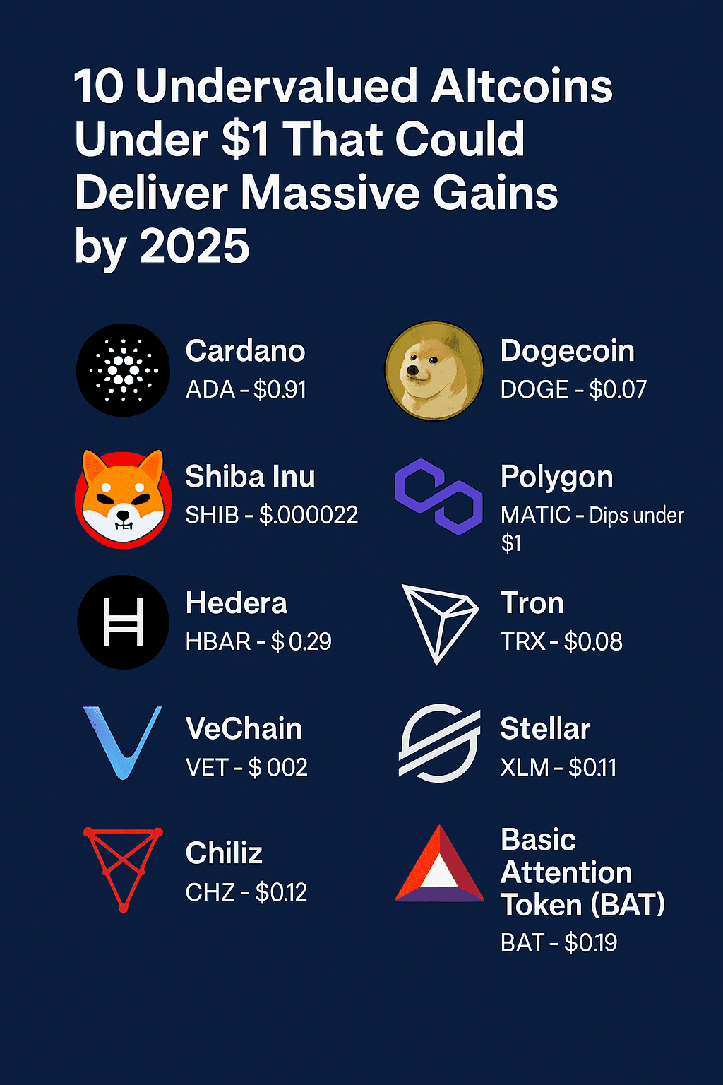 Der KryptowĂ€hrungsmarkt entwickelt sich weiter und bietet versierten Anlegern Möglichkeiten, verborgene SchĂ€tze zu entdecken. WĂ€hrend das Augenmerk oft auf Bitcoin und Ethereum liegt, bauen viele gĂŒnstige Altcoins still und leise starke Ăkosysteme mit dem Potenzial fĂŒr exponentielle Renditen auf. Wenn wir uns 2025 nĂ€hern, sind hier 10 Altcoins, die derzeit unter $1 gehandelt werden und explosionsartige Wachstumschancen haben könnten.