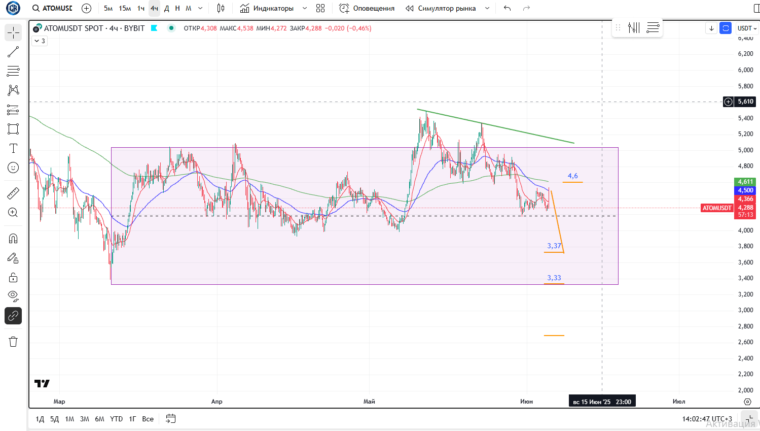 🔹Falls plötzlich etwas außergewöhnlich Großartiges mit Bitcoin passiert und er sich umkehrt, wird unser erstes Ziel der grüne Durchschnitt - EMA64 auf D1 sein. Aktuell liegt dieser bei 4.6, aber bei einem Rückgang von ATOM wird dieses Level schrittweise nach unten verschoben. Genaueres kann derzeit nicht gesagt werden.