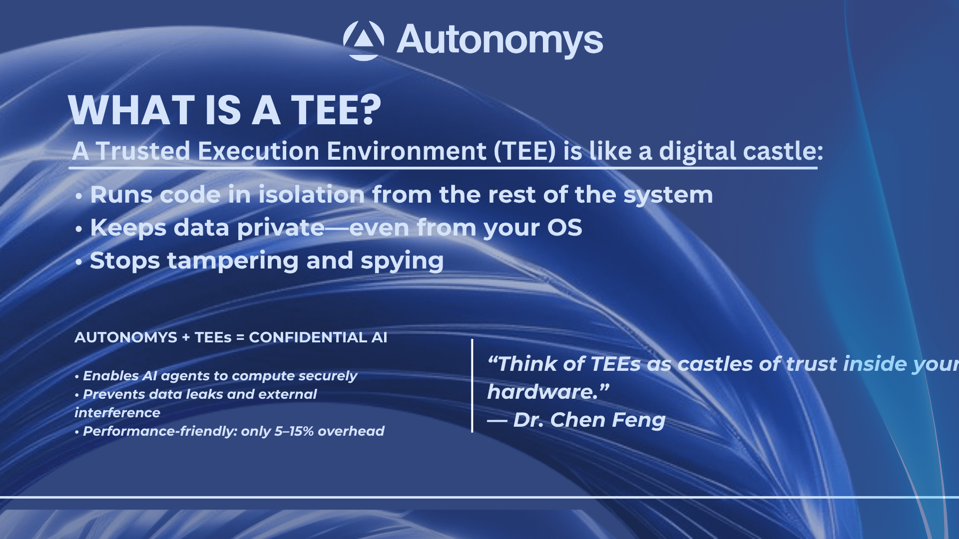 In einer Ära, in der künstliche Intelligenz (KI) zunehmend autonom wird, steht die Frage des Vertrauens im Raum. Wie können wir sicherstellen, dass #AI -Agenten in unserem besten Interesse handeln, insbesondere wenn sie unabhängig operieren? Dr. Chen Feng, Leiter der Forschung bei #AutonomysNetwork und Professor an der University of British Columbia, bietet eine überzeugende Antwort: Vertrauenswürdige Ausführungsumgebungen (TEEs).