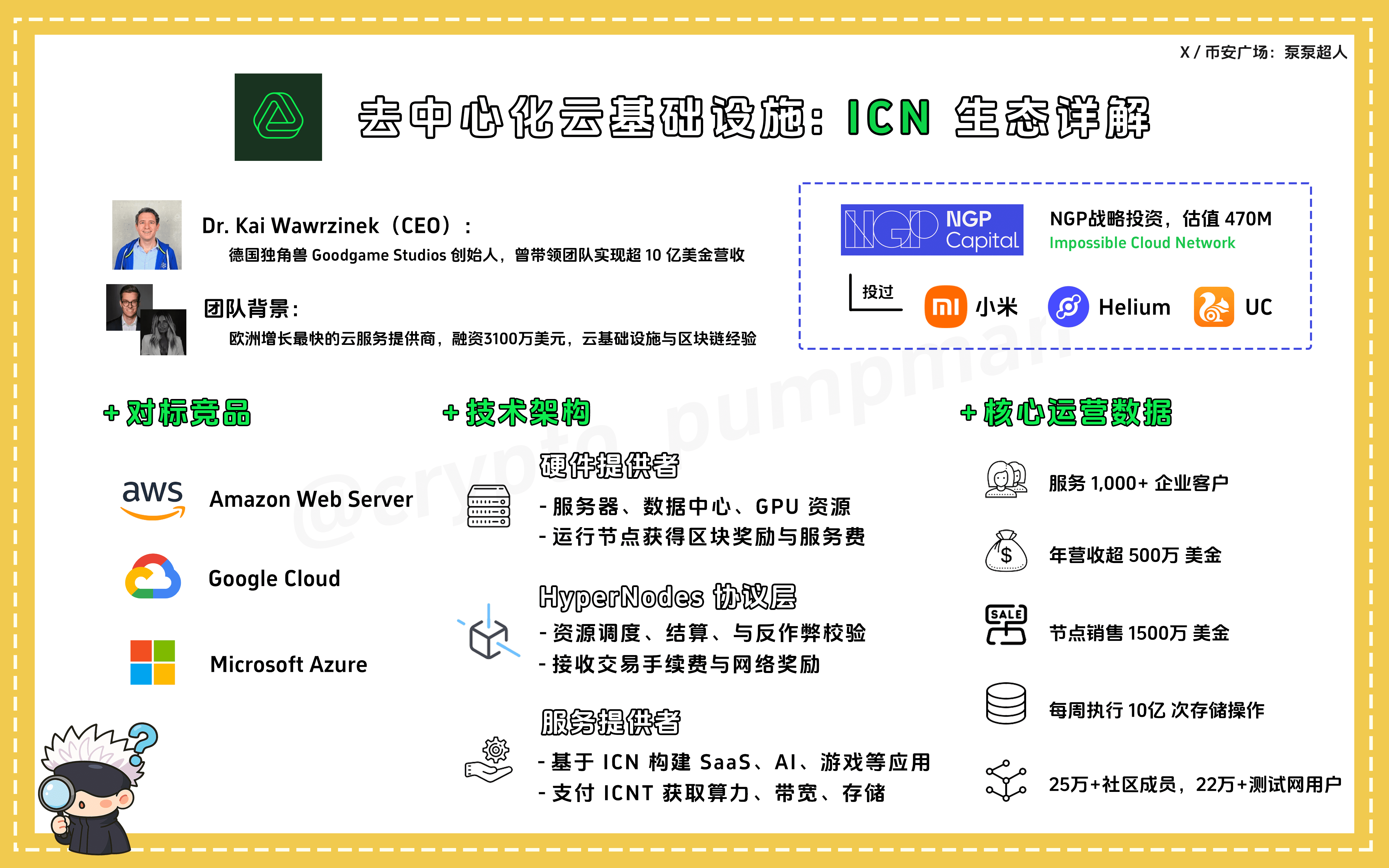 ICN ist kein reines On-Chain-Projekt 'nur mit Knoten und Token', sondern bündelt durch Multi-Service-Cloud und Partnerkanäle 'dezentralisierte Ressourcen' in SaaS-Produkte, die Unternehmen direkt erwerben können, und bildet ein positives Flywheel.