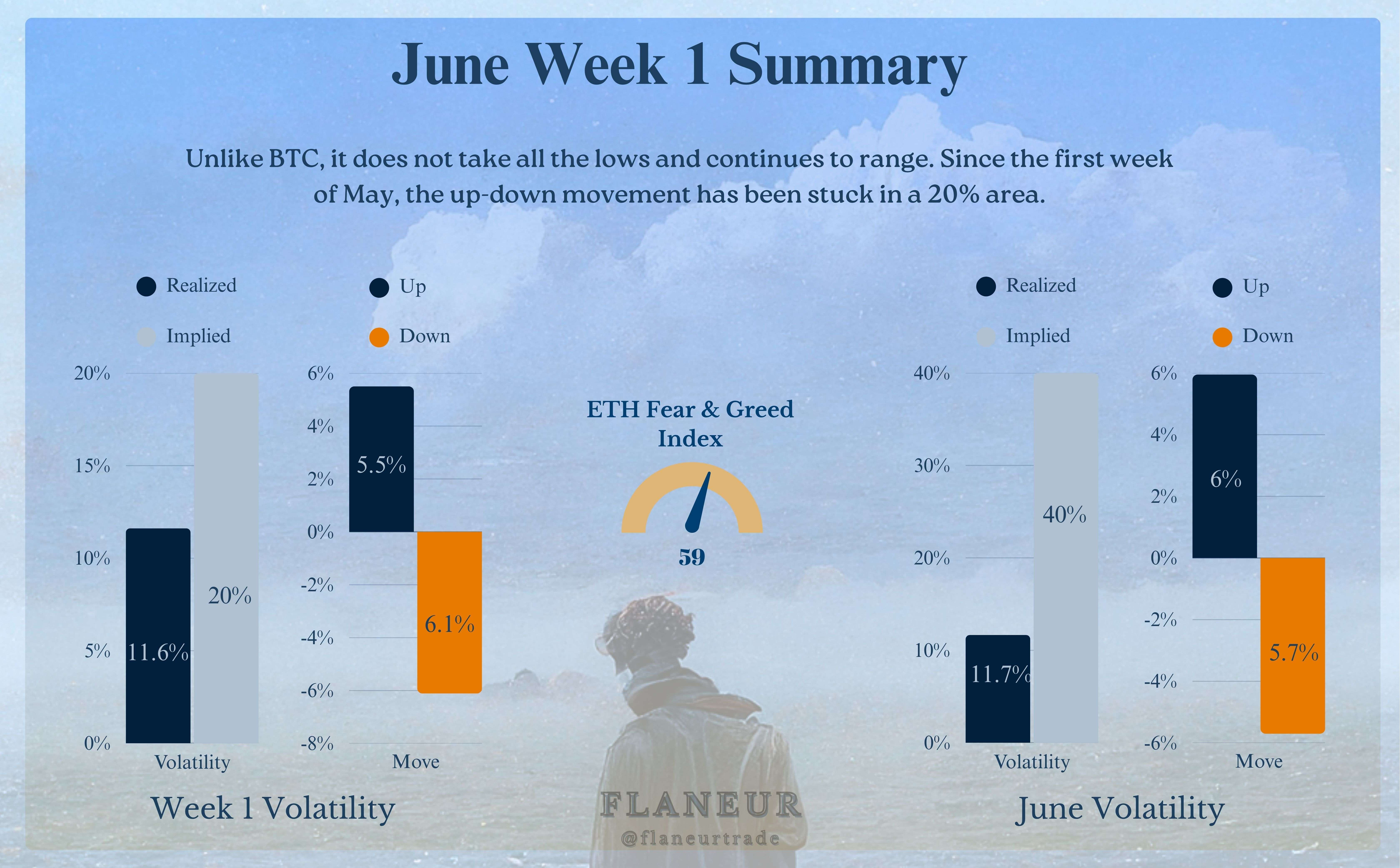 Die implizite Volatilitätsrange dieser Woche liegt erneut im Bereich von 2000-3000. ETH, das seit etwa 40 Tagen Bewegungen im Bereich von ungefähr 20% macht, wird es nicht sinnvoll sein, scharfe Bewegungen zu erwarten, ohne den Bereich von 2800 zu durchbrechen.