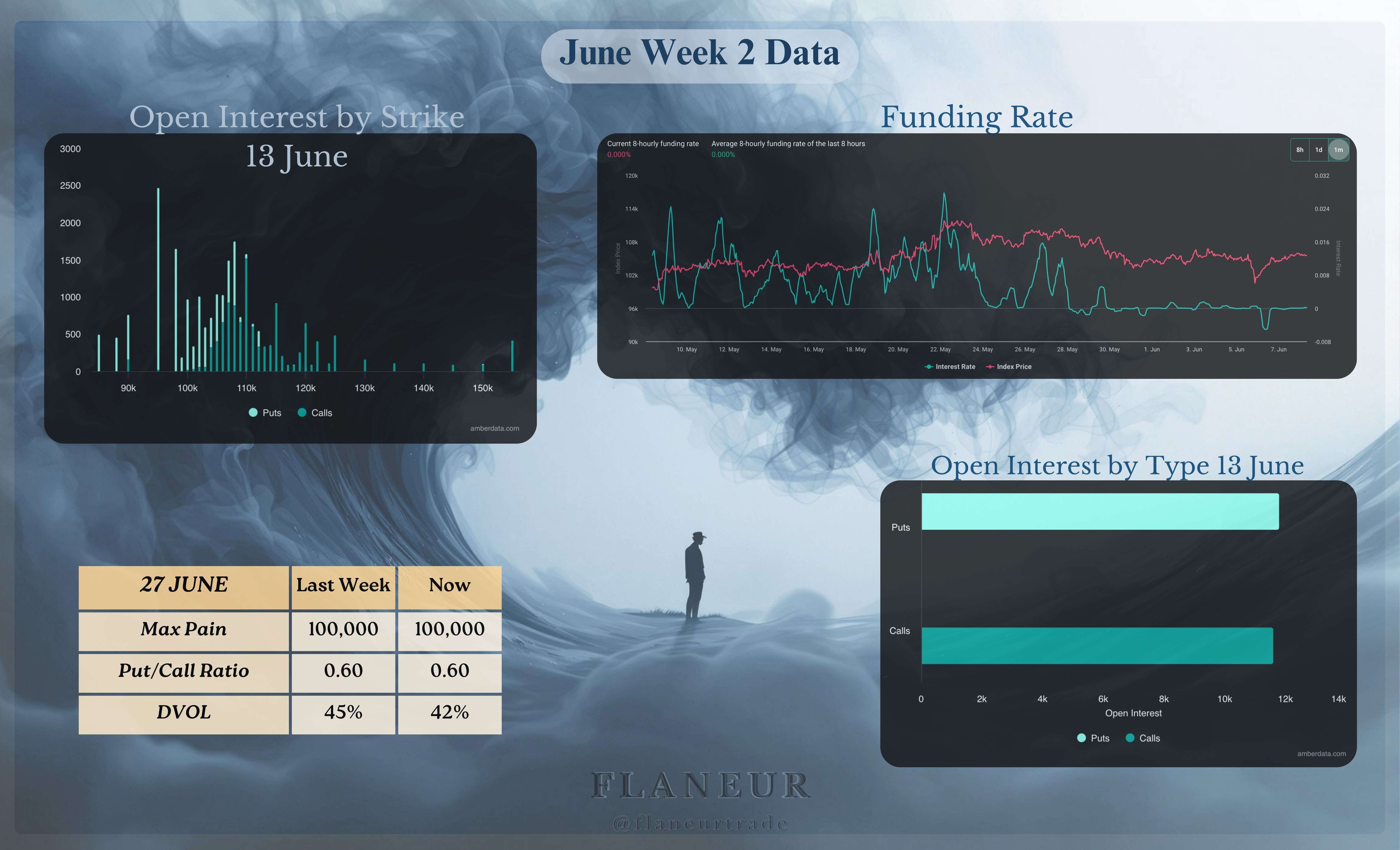 Der Rückgang im Volatilitätsindex DVOL setzt sich fort, aber insgesamt sind die Vertragskäufe auch ziemlich auffällig hoch. Dass der DVOL so stark fällt, deutet darauf hin, dass wir bald scharfe Bewegungen sehen könnten. Bei den Verträgen vom 13. Juni liegt der Max Pain Preis bei 106k, und obwohl Call-Verträge leicht dominanter sind, kann man nicht sagen, dass sie ein sehr bullisches Erscheinungsbild haben mit einem Put/Call-Verhältnis von 0,95.