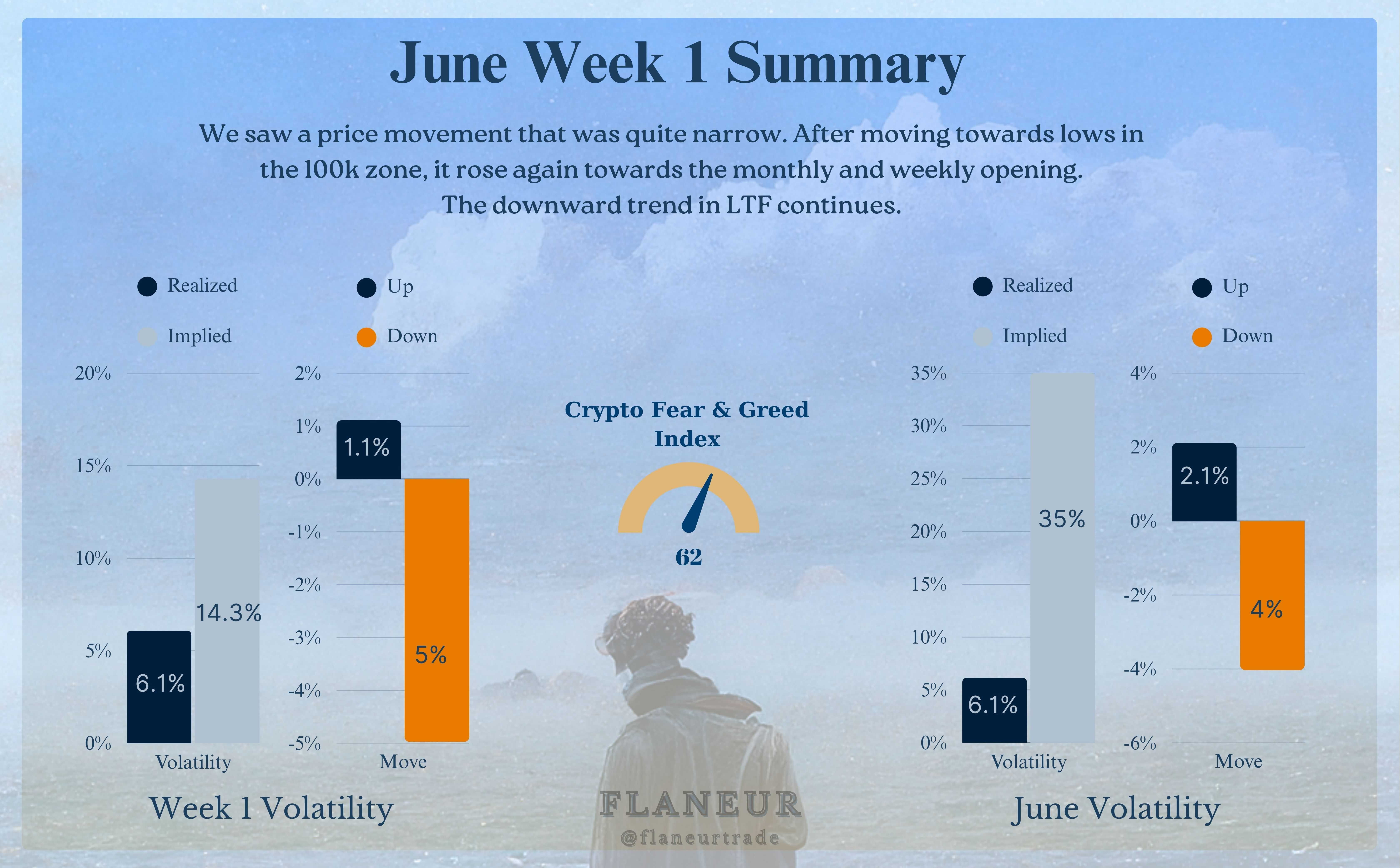 Wir haben eine Woche erlebt, in der der Preis leicht hin und her schwankte und letztendlich am gleichen Ort endete. Der Rückgang, der mit dem Standoff zwischen Elon und Trump einherging, wurde schnell aufgeholt, und die starke Struktur bleibt bestehen. Obwohl ETH im Vergleich zu BTC immer noch etwas schwächer erscheint, trägt Bitcoin weiterhin den Markt und dominiert ihn. Wir haben eine Woche betreten, in der die US-Inflationsdaten bekannt gegeben werden und der G7-Gipfel beginnt. Da dies einer der kritischsten Datenpunkte für Zinssenkungen sein wird, glaube ich, dass seine Auswirkungen erheblich sein werden.