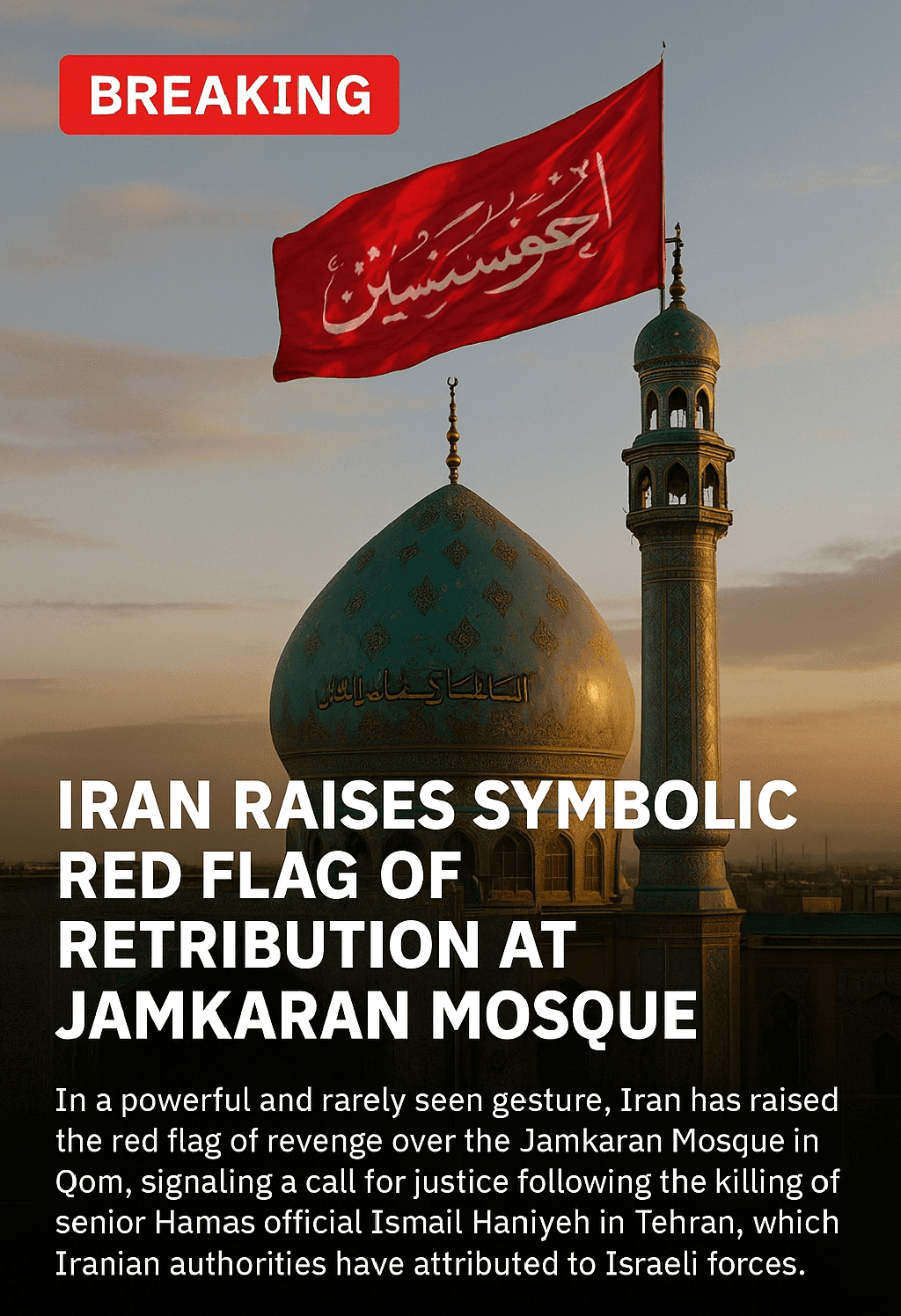 In einem dramatischen und symbolischen Schritt hat der Iran die rote Flagge der Vergeltung über der Jamkaran-Moschee in Qom gehisst – eine selten gesehene schiitische Tradition, die eine Forderung nach Gerechtigkeit nach einer nationalen Tragödie symbolisiert.
