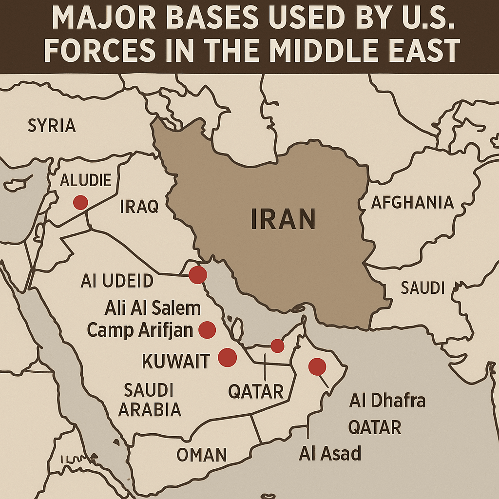 Stützpunkte weltweit, einschließlich strategischer Positionen in der Nähe von Iran.