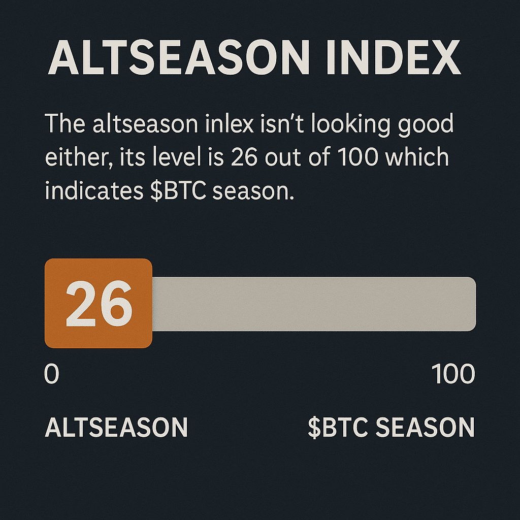 bei nur 26 von 100 und signalisiert klar, dass wir uns in einem Bitcoin-geführten Markt befinden.