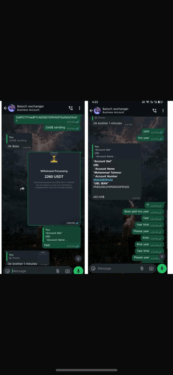 Heute hat ein vertrauenswürdiger Krypto-Tauscher namens Shah Nawaz, der seit vier Jahren aktiv ist, einen Benutzer um 2260 $ (PKR 650.000+) betrogen. Während der Markt instabil wird, begehen selbst bekannte und zuverlässige Personen Betrug. Die Gewinne sind niedrig und die Verzweiflung steigt.
