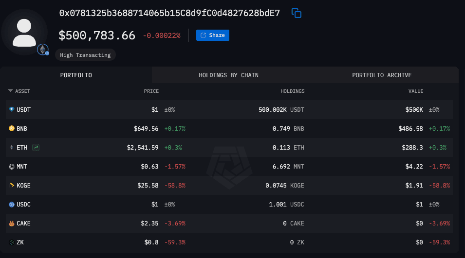20:28 - 20:33: Abhebung von 61.130 KOGE (~3,76 Millionen USD) und 273.017 ZKJ (~532.000 USD) aus dem Liquiditätspool.