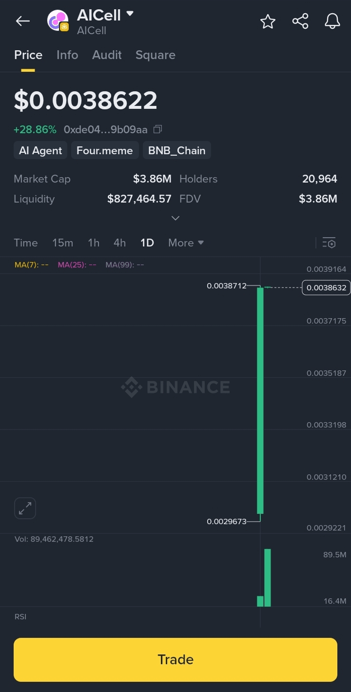 Aktueller Preis : \~\$0.00386 (steigt \~90% in den letzten 24 h)