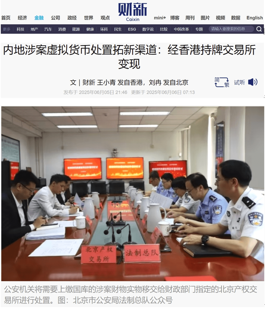Medien berichteten: 2017 begannen das Pekinger Public Security Bureau und das Pekinger Finance Bureau, einen "grünen Kanal" für die physische Einreichung an den Staatsschatz einzurichten, um es den Strafverfolgungsbehörden zu ermöglichen, beschlagnahmte Vermögenswerte, die an den Staatsschatz abgegeben werden müssen, physisch an die von den Finanzbehörden benannte Börse zu übergeben. Im Rahmen dieser innovativen Methode zur grenzüberschreitenden Behandlung werden beschlagnahmte virtuelle Währungen durch die Börse behandelt, die nach Annahme des Mandats ein professionelles Dienstleistungsunternehmen auswählt, um die beschlagnahmten virtuellen Währungen zu überprüfen, zu empfangen, zu übergeben usw. und diese über eine regulierte, lizenzierte Börse in Hongkong öffentlich zu liquidieren. Nach Genehmigung durch die nationale Devisenverwaltungsbehörde wird der Erlös auf das spezielle Konto der Strafverfolgungsbehörden für beschlagnahmte Gelder überwiesen und dem Staatsschatz zugeführt. [Der Schlüsselkanal zur Bildung eines "geschlossenen Kreislaufs" in diesem Modell ist die öffentliche Liquidation über die regulierte, lizenzierte Börse in Hongkong]. Mit der Zusammenarbeit mehrerer Institutionen können die Schritte zur Erkennung, Übergabe, Preisanfrage und Währungsumtausch für virtuelle Währungen innerhalb von 24 Stunden abgeschlossen werden.