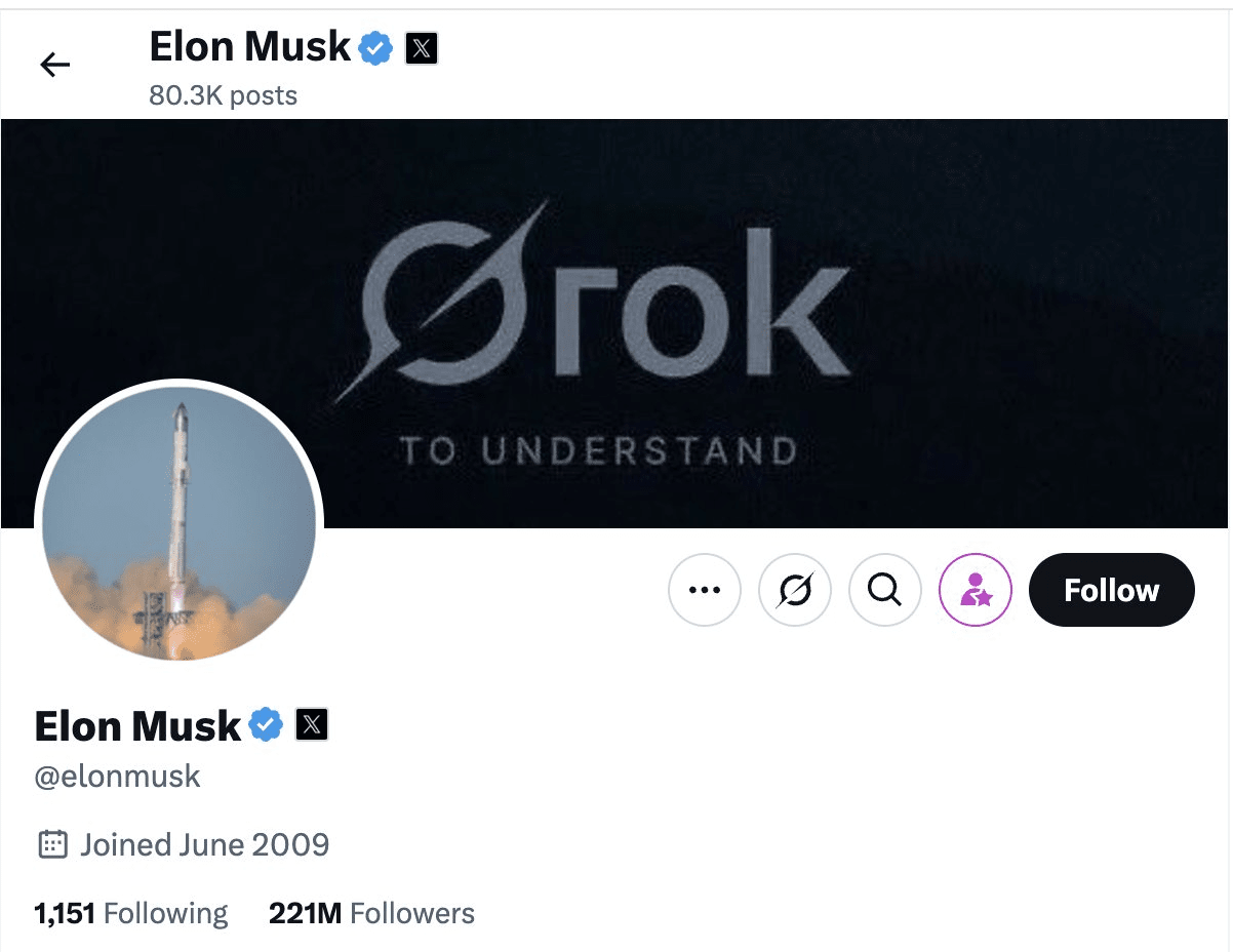 ✦ Heute hat Elon eine Rakete als sein X-Profilbild eingestellt.